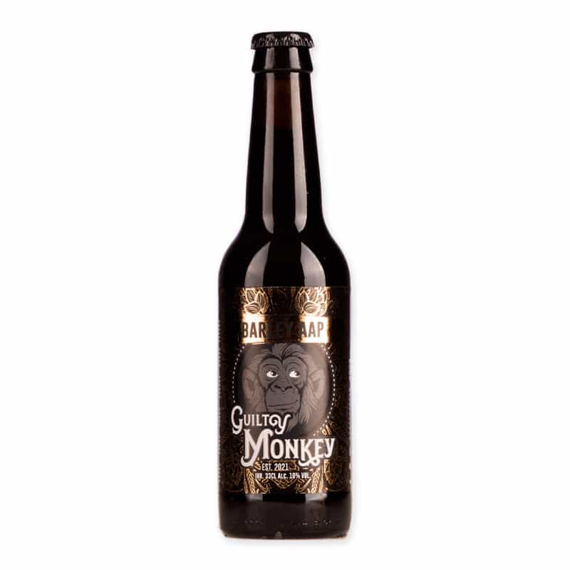Guilty Monkey Barley Aap onderscheidt zich door zijn diepe amberkleur en een robuuste schuimkraag. In de neus vind je aroma’s van karamel, noten, en een vleugje fruitige esters die samenkomen voor een intrigerende geurbeleving. De smaak is rijk en complex, met tonen van mout, een subtiel bittertje en een lang aanhoudende afdronk.