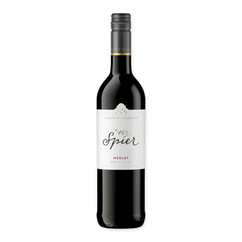 De Spier Signature Merlot is rijk aan tonen van rijpe pruimen en donkere kersen, gecomplementeerd door subtiele hints van donkere chocolade en vanille door de houtrijping. Het palet is zacht en goed gestructureerd met een aangename afdronk die zorgt voor een harmonieuze balans tussen fruit en tannines.