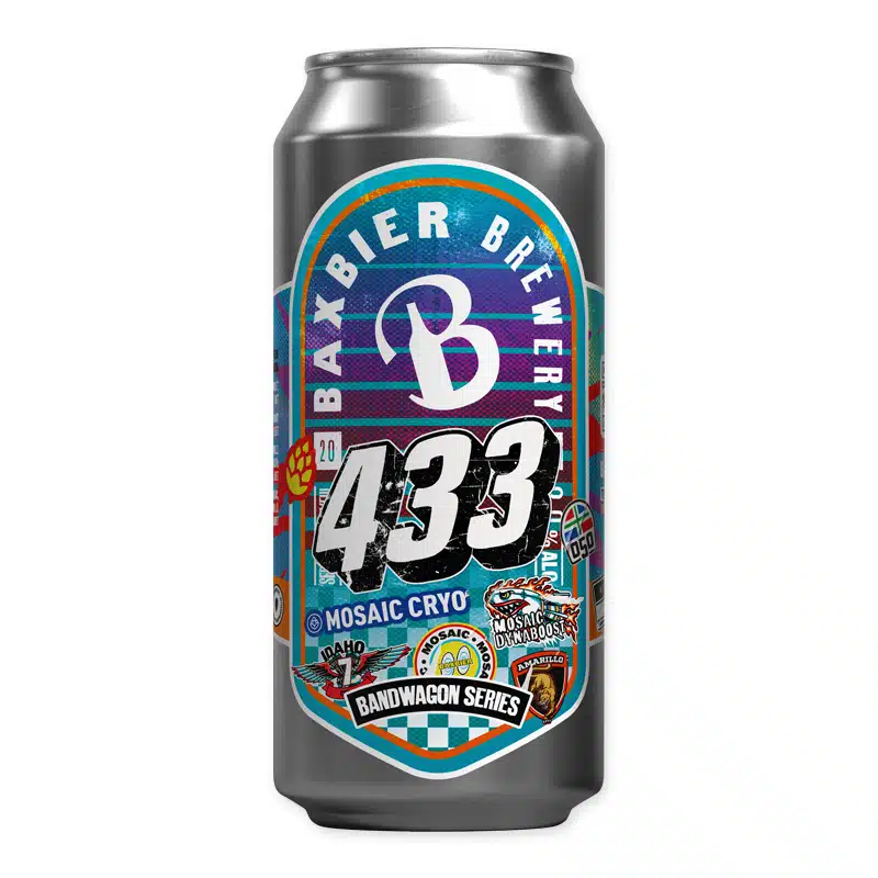Bandwagon 433 is een sappige NEIPA van 8% van Baxbier. Dubbel koudgehopt met Idaho 7, Amarillo en Mosaic Cryo hop.