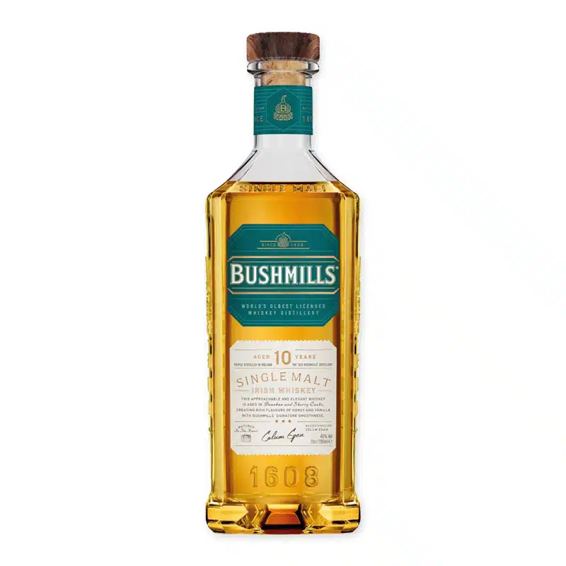 De Bushmills 10 Year Old heeft een lichte, fruitige aroma met tonen van vanille, honing en een hint van chocolade. Op het palet ontvouwt zich een zijdezachte textuur met smaken van rijpe vruchten, kaneel en nootachtige tinten, gevolgd door een zachte, aanhoudende afdronk.