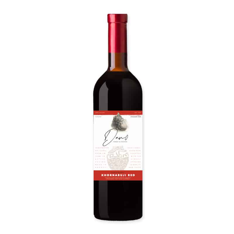Dano’s Winery Khornabuji Red is een krachtige rode wijn uit het oosten van Georgië, geproduceerd door David Mosulishvili. De naam Dano’s Winery verwijst naar David en zijn vrouw Nona – samen vormen zij het hart van dit kleinschalige wijnproject aan de voet van het historische fort van Khornabuji.