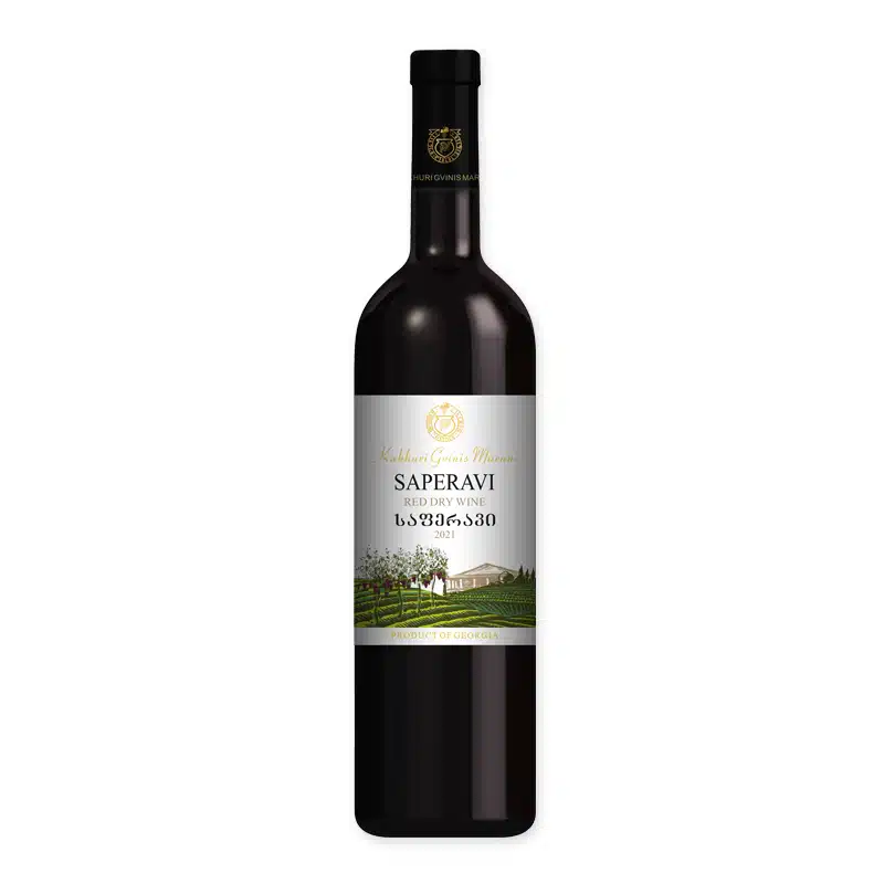 Een volle en toch soepele, fruitige rode Saperavi van het wijnhuis “Kakhuri Gvinis Marani” (de wijnkelder van Kakheti – dé wijnstreek van Georgië). Het is een wijnhuis welke flink aan de weg timmert – met zojuist een hele nieuwe wijnproductie faciliteit in het hartje van Kakheti. Met zowel de nieuwste als de oudste (qvevri) technieken maken ze er fantastische wijnen met een zeer strikte kwaliteitscontrole.