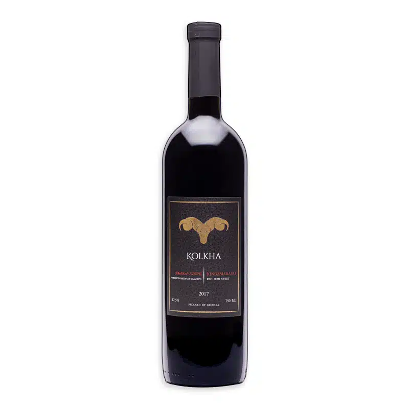 Kolkha Kindzmarauli is een elegante halfzoete rode wijn die traditioneel wordt geproduceerd met Georgische Saperavi-druiven.