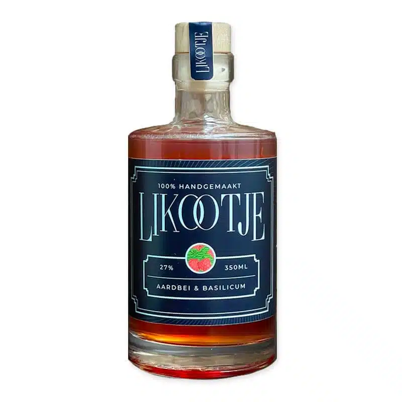 Likootje Aardbei-Basilicum is een ambachtelijke likeur met een unieke combinatie van zoete aardbei en frisse basilicum. Perfect om puur te drinken, met ijs, of als basis voor verrassende cocktails.