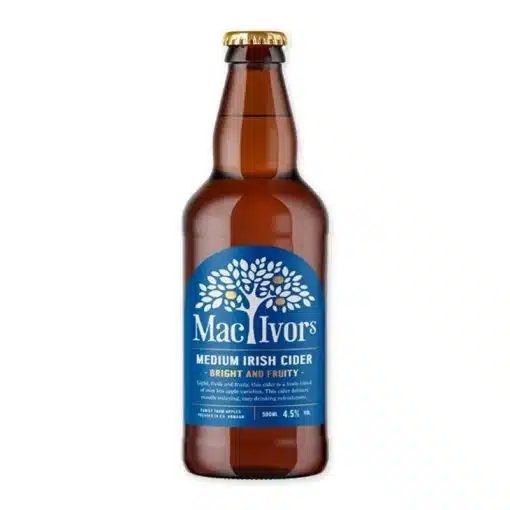 MacIvors Medium Cider is een prachtige reflectie van eeuwenoud vakmanschap, geproduceerd in de weelderige boomgaarden van Noord-Ierland. Deze cider wordt gemaakt van zorgvuldig geselecteerde appels, die met de grootste zorg worden gefermenteerd om de natuurlijke smaken te behouden. MacIvors gebruikt traditionele methoden die door de generaties heen zijn doorgegeven, wat resulteert in een authentieke en natuurlijke cider. Het unieke klimaat en de vruchtbare bodem van de regio dragen bij aan de rijke smaak van de appels.