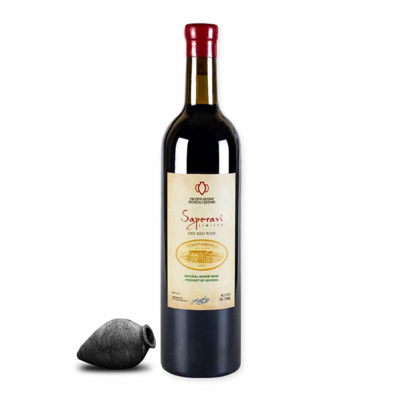 De diepe robijnrode kleur en complexe aroma’s van zwarte bessen, pruimen en een vleugje specerijen kenmerken de Tchotiashvili Saperavi. Bij het proeven onthul je rijke smaken van rijpe kersen en bramen, gecombineerd met subtiele aardse tonen, chocolade en tabak. De textuur is vol en fluweelzacht, met stevige tannines en een levendige zuurgraad. Dit leidt tot een langdurige en evenwichtige afdronk. De wijn is verfijnd en veelzijdig, geschikt voor diverse gelegenheden.