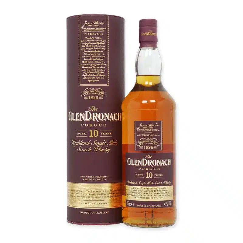 The Glendronach 10 Years old Forgue is een distillaat van hoge kwaliteit die de rijke tradities van Schotse whiskymakers belichaamt. Deze whisky wordt geproduceerd in Highland, Schotland, en staat bekend om zijn diepe, complexe smaken die ontstaan door een zorgvuldige distillatieproces gevolgd door een tien jaar durende rijping in eikenhouten vaten, wat essentieel is voor het ontwikkelen van zijn unieke karakter.