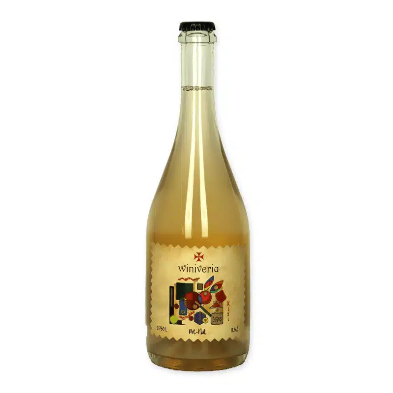“Pet Nat” is de afkorting van Pétillant Naturel, oftewel natuurlijke bubbels. Met behulp van de Georgische ‘Machari’-methode wordt de gisting op de fles voltooid, Deze Pet Nat heeft Zachte bubbels en mooie afdronk